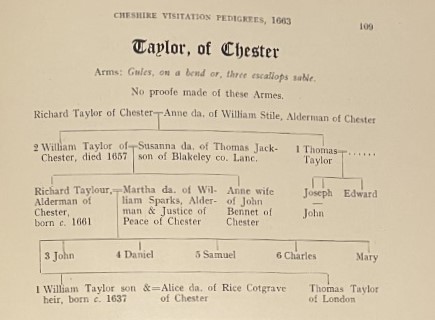 Married twice, when he died in 1659, Reece Cotgreave left property to his two sons, Thomas and John, and his daughter Alice (named after her mother). The sons died without children and when the College of Arms checked up on who was using family heraldry in Chester in 1663, it was Alice the daughter of “Rice Cotgrave” – both names spelled wrongly – who appeared in the records as part of her husband’s family: