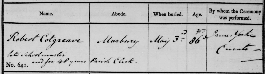 When Robert Cotgreave died in 1855 at the age of 86, his handwriting was shaky but his reputation was secure. In the box marked “name” in the parish register, into which was almost always written exactly that – someone’s name and nothing else – the priest recorded that Robert had been “for 48 years Parish Clerk”.